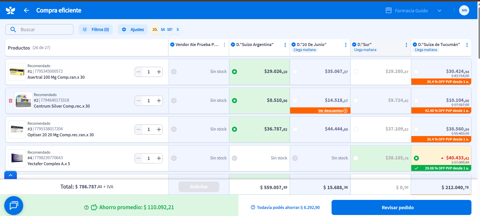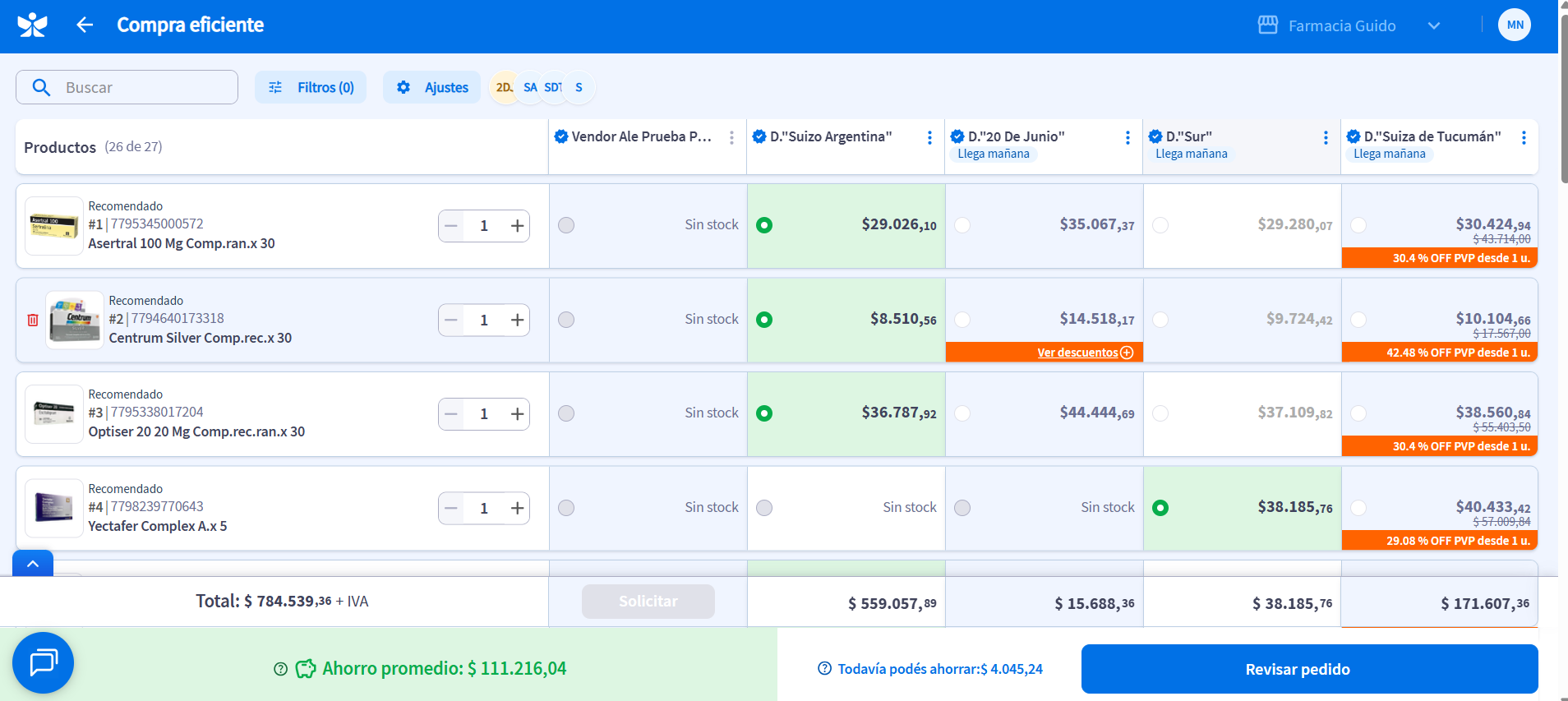Si deseas que el sistema no tome en cuenta un distribuidor en la comparativa, puedes “apagarlo”.