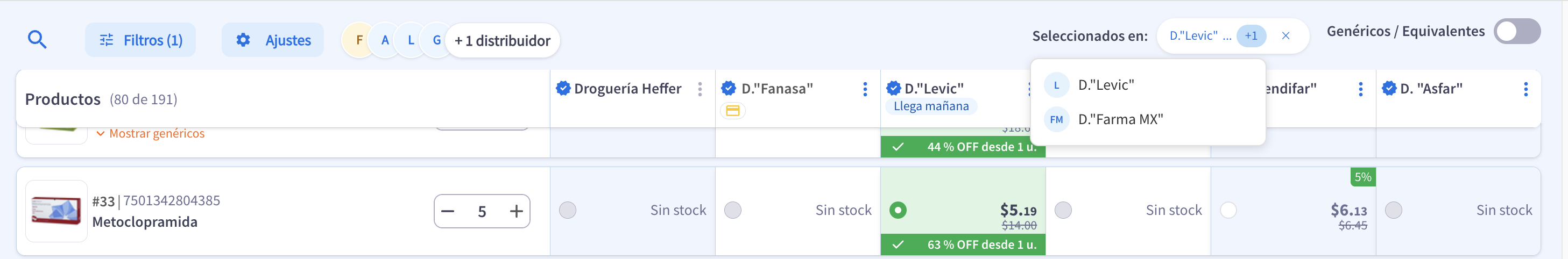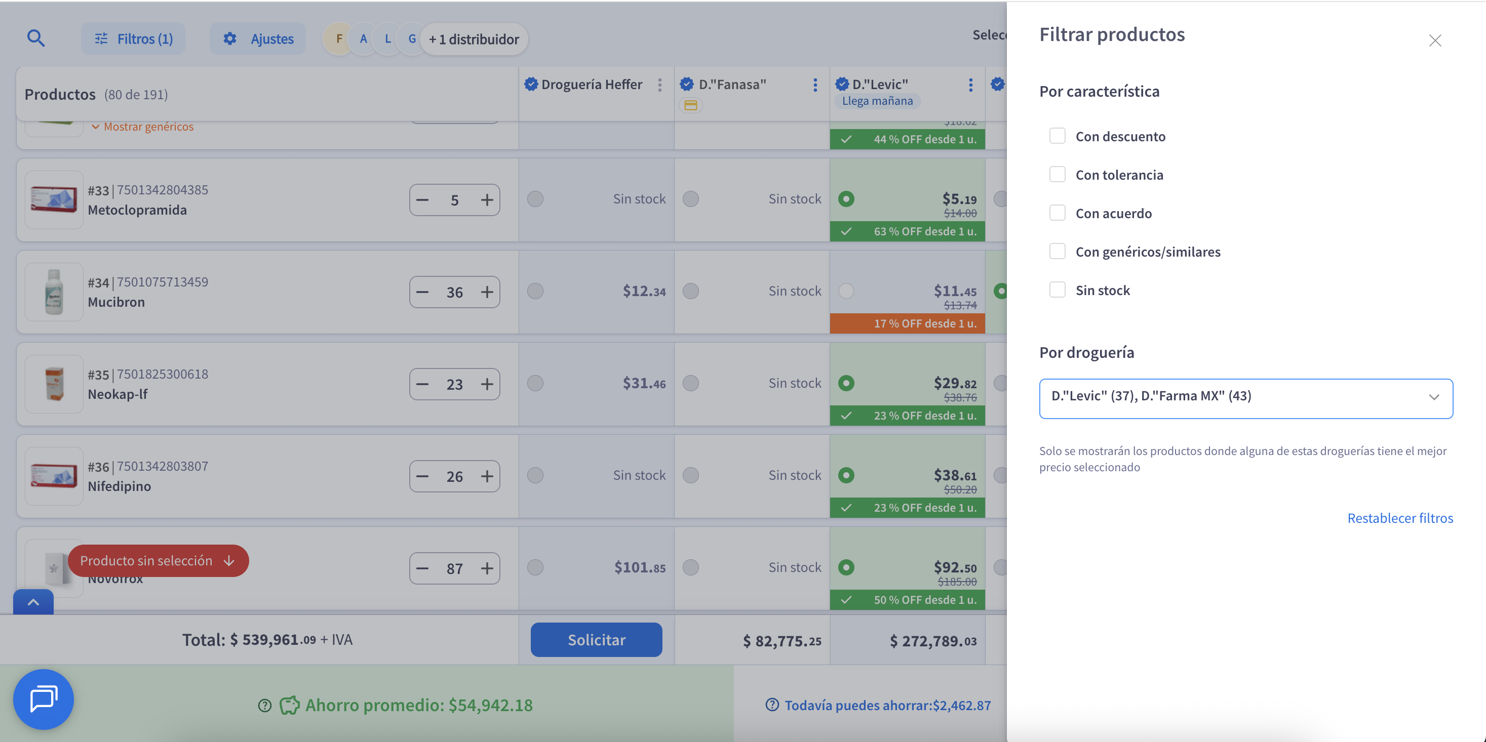 Especialmente útil cuando se trabaja con varias droguerías en una misma compra.